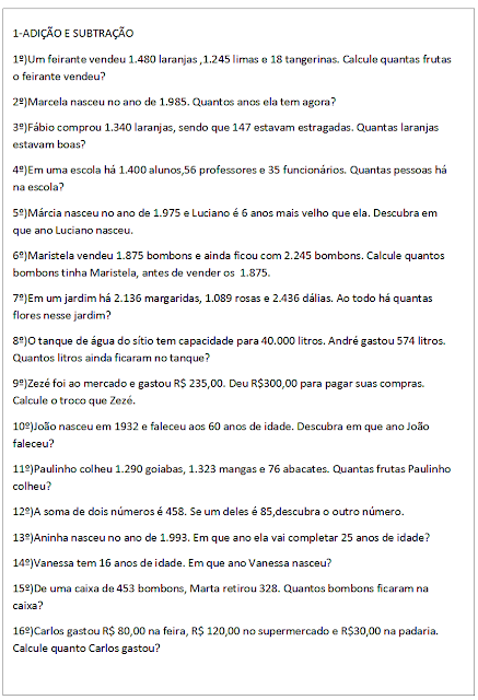 Obs.: Faça no caderno de matemática